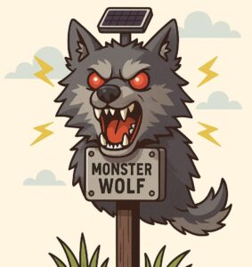 モンスターウルフは、赤く光るLEDの目と90dB以上の威嚇音を発することで、熊やイノシシ、鹿などを遠ざけます。音声は50種類以上あり、動物が慣れないようにランダム再生されるのが特徴です。音声には人間の怒鳴り声、犬の鳴き声、銃声などが含まれており、熊の聴覚に強く訴える設計になっています。